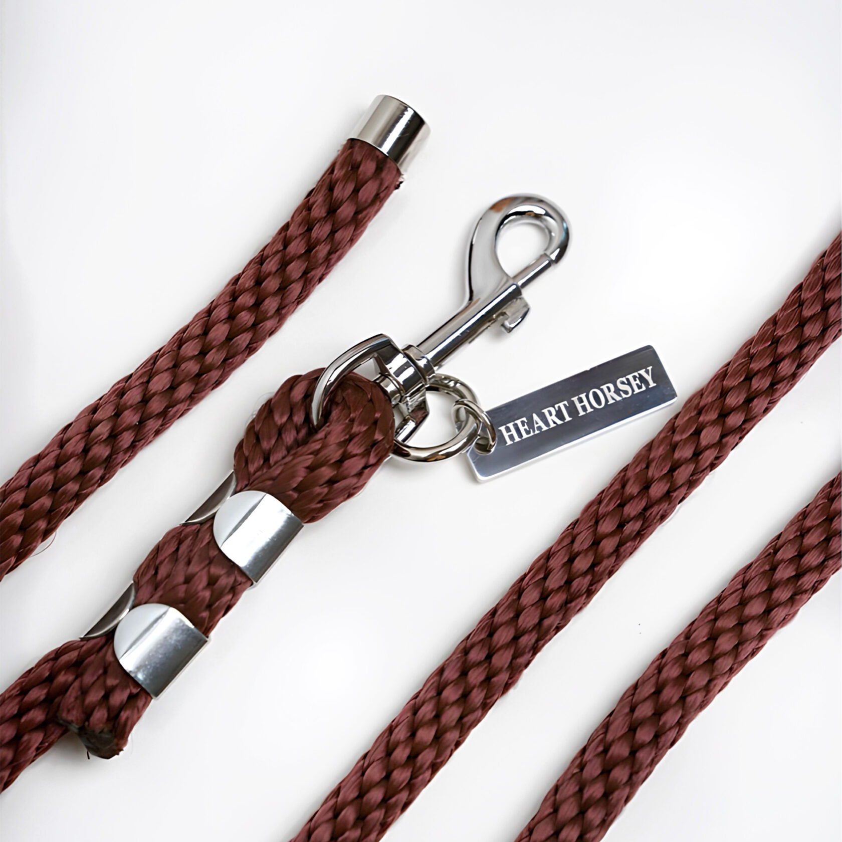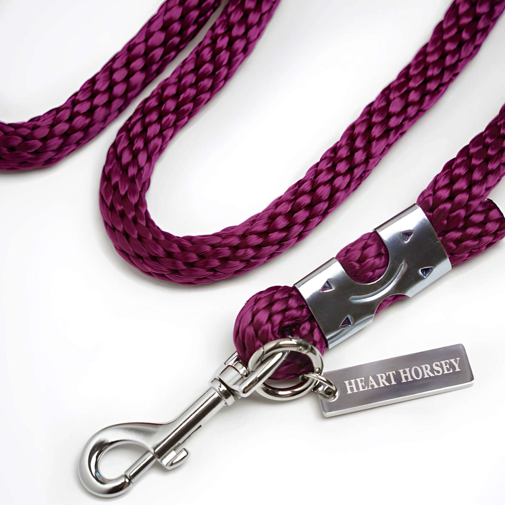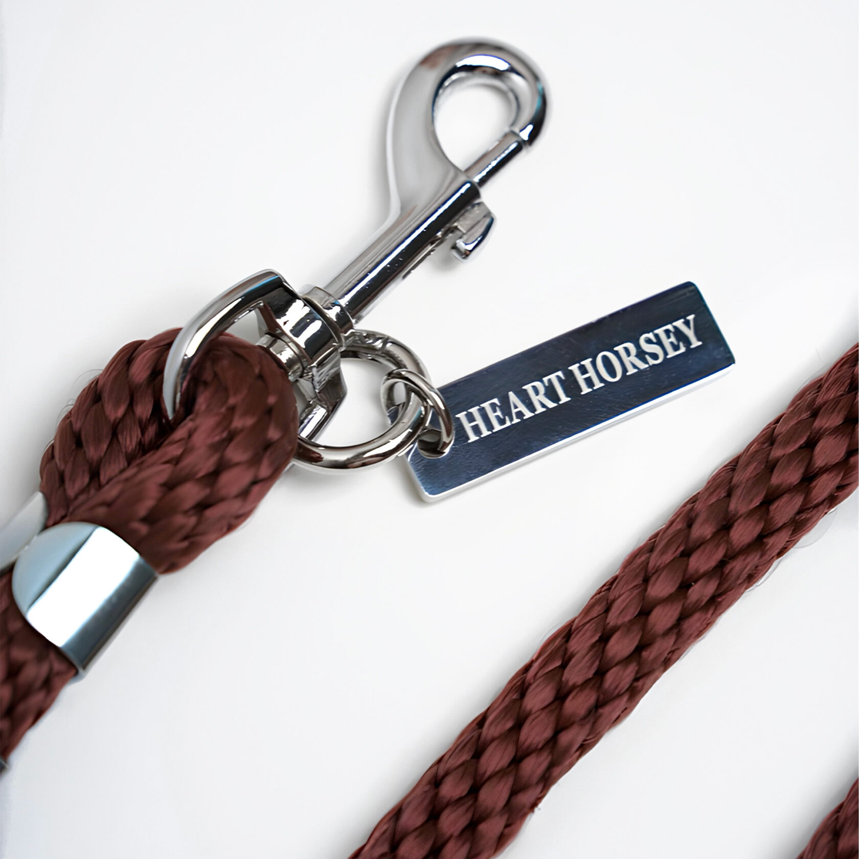 Усиленный карабин в серебряном цвете. Диаметр шнура 14мм. Длина 4 метра. Фирменный брелок HEART HORSEY в металле.