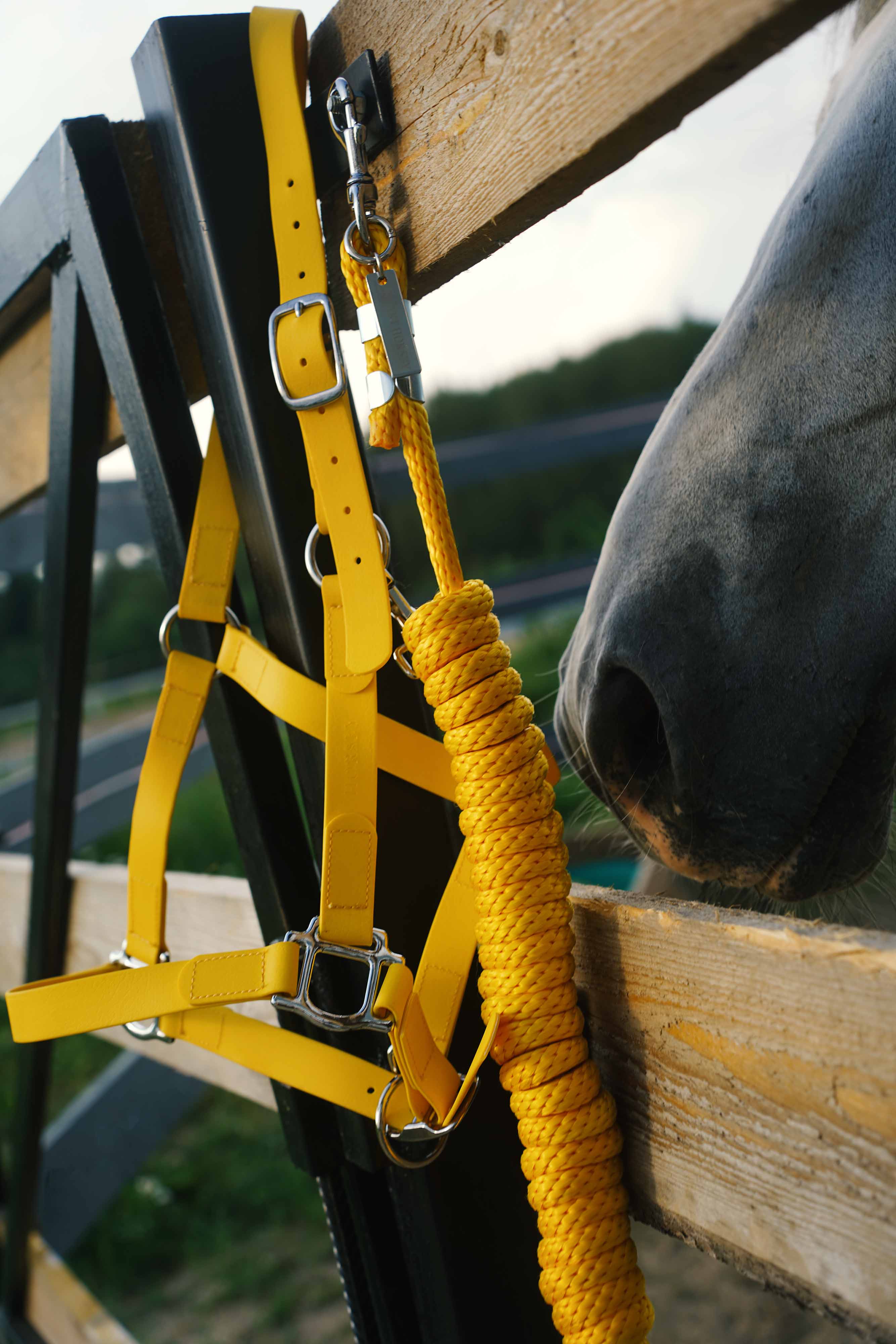 Лимонный недоуздок - хит лета! Идеальный акцент - яркий, индивидуальный, мягкий и при этом суперудобный. Не натирает лошади за счет широкой стропы, а биотан позволяет гулять в нем и купаться.